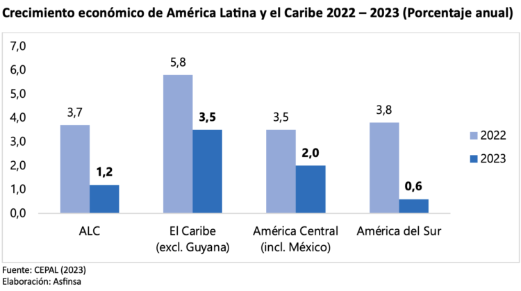 De acuerdo con las proyecciones de la Comisión Económica para América Latina y el Caribe (CEPAL), el año 2023 presentará un panorama complejo para la economía de la región, debido a la desaceleración internacional, el debilitamiento del comercio intercontinental, el aumento de las tasas de interés y la continuación de un proceso de inflación todavía elevado.