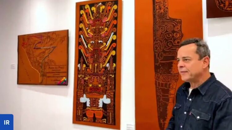 De todo esto, él construye su obra máxima, «El Perú itinerante», compuesta por 12 tomos que se encuentra en el Ministerio de Relaciones Exteriores y algunas personas particulares también tienen. Esto está hecho en una fibra que yo utilicé como soporte para desarrollar como textiles naturales de diferentes texturas, desarrollan este planteamiento un tanto lúdico de un territorio peruano. Incluso el recorrer la selva, bueno, acá tenemos el gallito de las rocas, representativo del Perú. Entonces, la relación puede tener con las artilleras, por ejemplo, que son representaciones populares del textil en el Perú, la cual es de Tormagón.