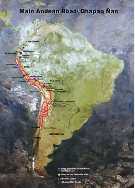 Cuando Francisco Pizarro llegó al Perú, aquí existía el Imperio Inca, quienes tenían una organización política y social considerada muy desarrollada. El Tahuantinsuyo (los “cuatro suyos”), cuyo centro administrativo era el Qosqo, tenía una extensión enorme de territorio que abarcaba lo que hoy los países de Perú, Ecuador, Chile, Colombia, Argentina y parte del Brasil. Tenían un extraordinario sistema de caminos conocido como Qhapaq Ñan, que ha sido declarado por la Unesco como “Patrimonio cultural de la humanidad”.
