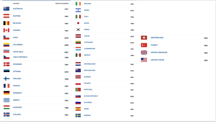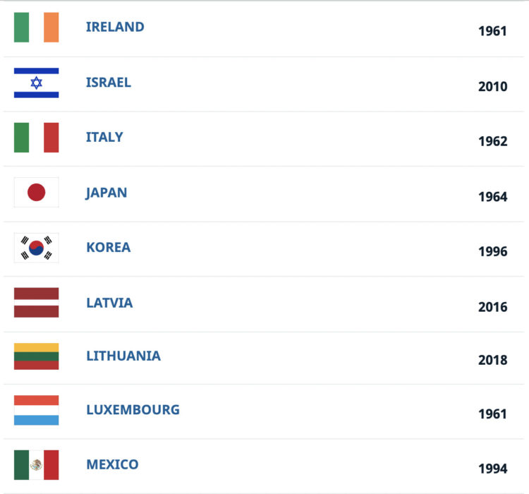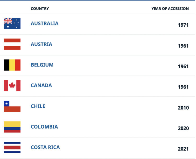 - Desde 2010, ocho nuevos países se han unido a la OCDE.