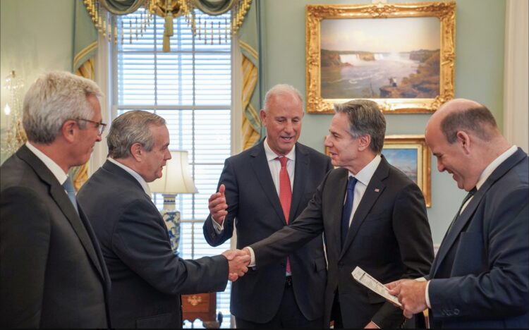 Canciller Gonzalez Olaechea, estuvo acompañado del embajador Ferrero, en la reunión sostenida con el Secretario Blinken en Washington D.C. en la que acordaron profundizar la asociación estratégica del Perú y Estados Unidos fortaleciendo el diálogo, la coordinación y la cooperación bilateral.