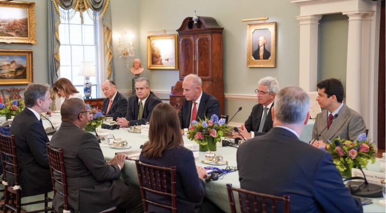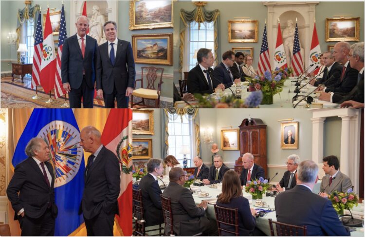 El Ministro de Relaciones Exteriores, Javier González-Olaechea, sostuvo una reunión de trabajo en Washington D.C. con el Secretario de Estado de los Estados Unidos, Antony Blinken, ocasión en la que acordaron profundizar los alcances de la asociación estratégica que mantienen ambos países, fortaleciendo el diálogo, la coordinación y la cooperación en todos los ámbitos de la relación bilateral.