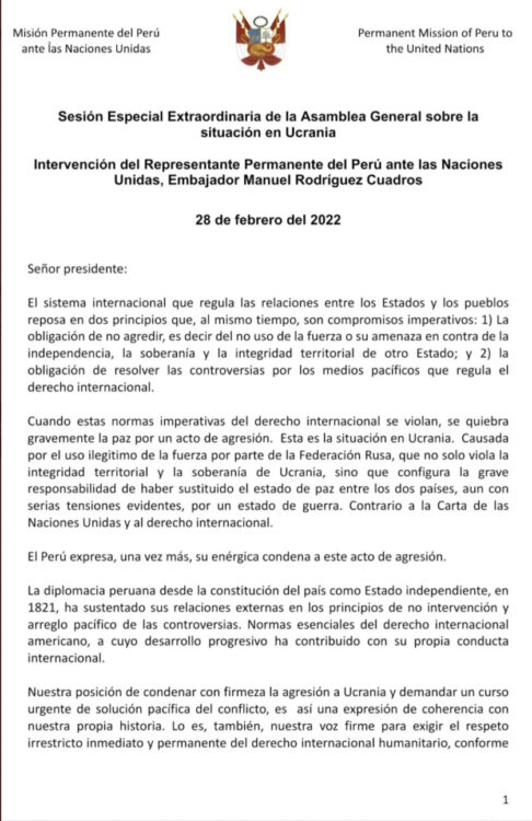 Ucrania: Perú en las Naciones Unidas