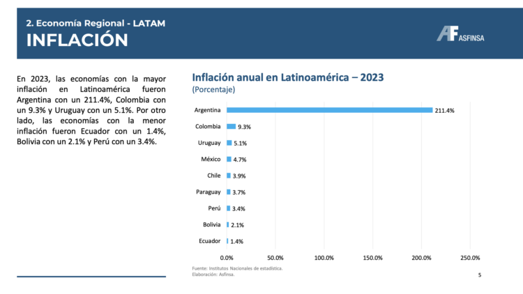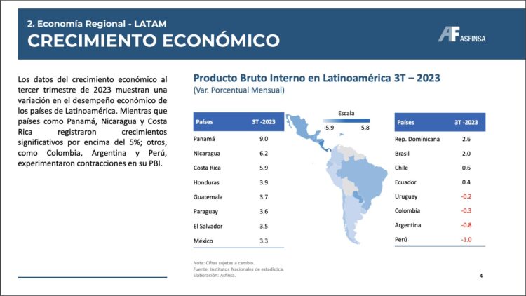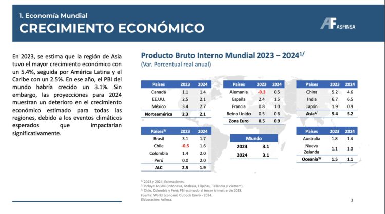 • En 2023, Asia lideró el crecimiento económico con un 5.4%, seguido por América Latina y el Caribe con un 2.5%. A nivel mundial, el PBI del mundo habría crecido un 3.1% en 2023.
