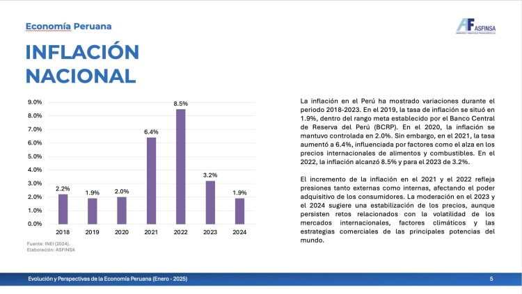 - La inflación nacional del 2024 cerró en 1.90%, dentro del rango meta del BCRP (1% – 3%).