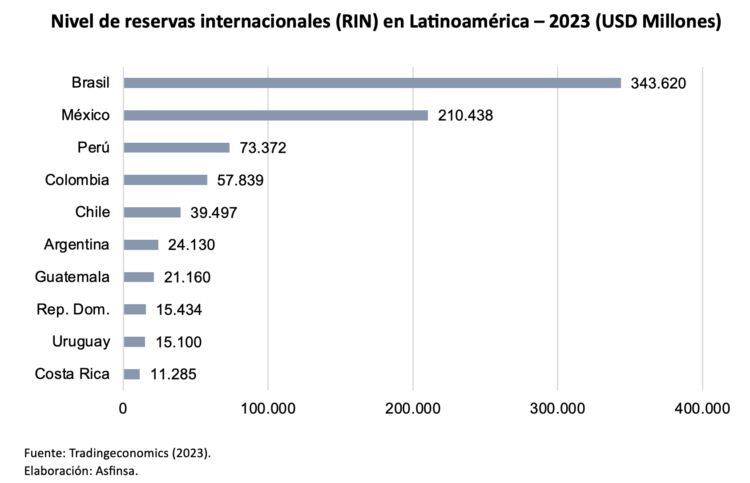 Las reservas internacionales juegan un papel vital en la estabilidad financiera y la capacidad de los países para afrontar desafíos económicos y shocks externos. Al observar los niveles actuales de reservas internacionales netas entre los países de la región Latinoamericana, se evidencian notables diferencias en sus volúmenes, que serían sus niveles de enfrentamiento ante incertidumbres globales.