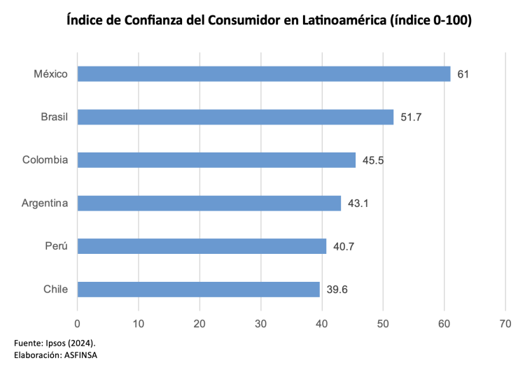 A nivel regional, estos indicadores reflejan un contexto económico desafiante. Los descensos en la confianza del consumidor en Perú y Chile sugieren que su recuperación económica enfrenta obstáculos, especialmente relacionados con el empleo, la estabilidad financiera y la política. Los países con índices más altos, como México y Brasil, podrían servir como ejemplos de políticas y estrategias exitosas para mejorar la confianza del consumidor.