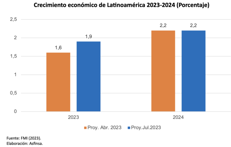 El FMI prevé que la economía latinoamericana aumente, en promedio, 1.9% para el presente año, una cifra 0.3% superior a las proyecciones proporcionadas tres meses atrás. Para el 2024, las perspectivas de crecimiento económico se mantienen constantes en 2.2%.