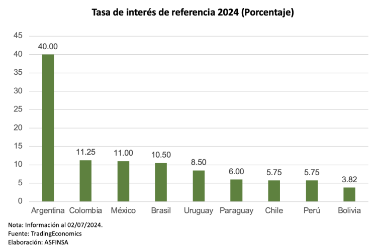 En el 2024, las tasas de interés de referencia en Latinoamérica han variado significativamente, reflejando las distintas condiciones económicas y estrategias monetarias de cada país. Argentina lidera con una tasa del 40%, un reflejo de su intento de controlar una inflación crónicamente alta. Otros países como Colombia (11.25%) y México (11%) también mantienen tasas elevadas para contrarrestar presiones inflacionarias.
