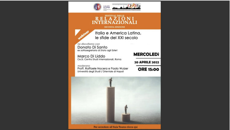Ho il piacere di allegare la locandina dell’incontro «Italia e America Latina, le sfide del XXI secolo», che si terrà il 20 aprile in formato webinar, nell’ambito del II Festival delle Relazioni Internazionali.