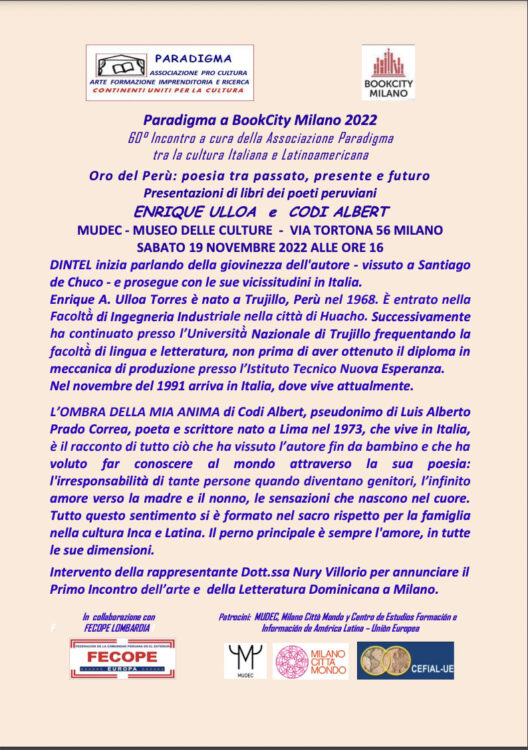 Invito: 19/XI/2022 Oro del Perù: poesia tra passato, presente e futuro