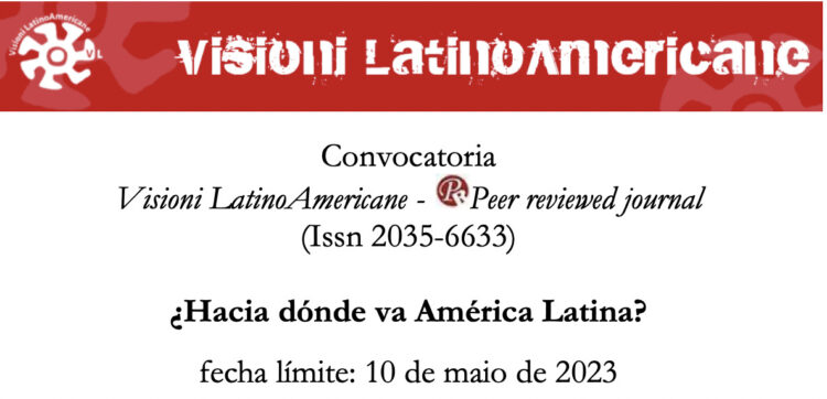 La revista internacional Visioni LatinoAmericane (Edizioni Università di Trieste, Italia) lo invita a enviar trabajos originales e inéditos que propongan una reflexión crítica y razonada sobre: ¿Hacia dónde va América Latina?