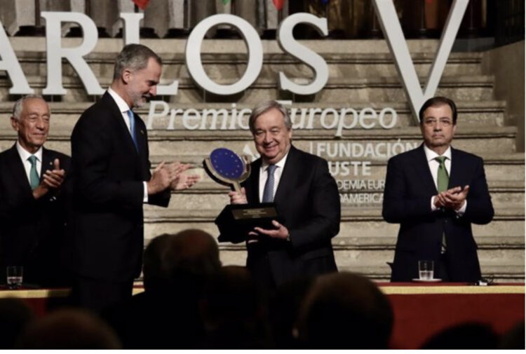 Estoy profundamente conmovido. Es un gran honor estar hoy ante ustedes para recibir el Premio Europeo Carlos V. Naturalmente, soy muy consciente de que este premio no es solo para mí. Lo recibo también en nombre de todas las Naciones Unidas, y por eso me siento aún más orgulloso.