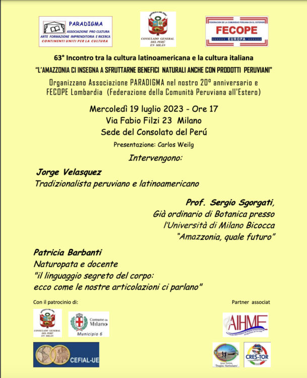 INVITO: 19 Luglio 2023 ore 17 presso il Consolado del Perú