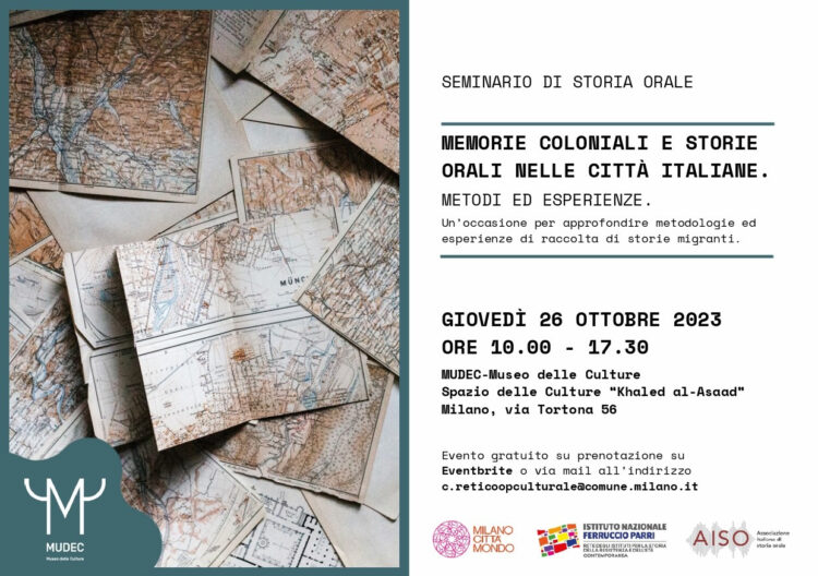 La giornata, promossa dal Mudec – Ufficio Progetti Interculturali, Reti e Cooperazione e Ufficio Arte negli Spazi Pubblici –, con la collaborazione di AISO (Associazione Italiana di Storia Orale) e Istituto nazionale Ferruccio Parri, vedrà la condivisione di interventi metodologici al mattino e la presentazione delle esperienze cittadine il pomeriggio. Gli interventi metteranno in luce le buone pratiche di raccolta e di archiviazione della storia orale in contesti di memorie migrazionali, coloniali e diasporiche, già sperimentate sia dalle istituzioni, sia dall’associazionismo e attivismo cittadino.
