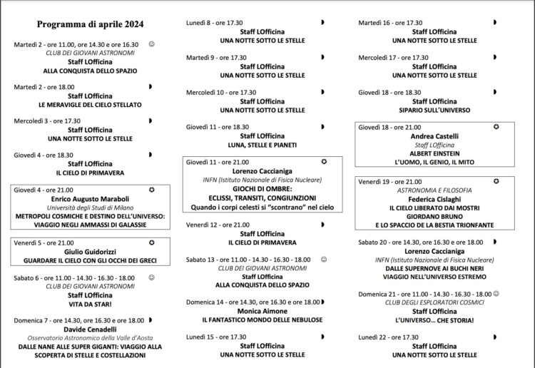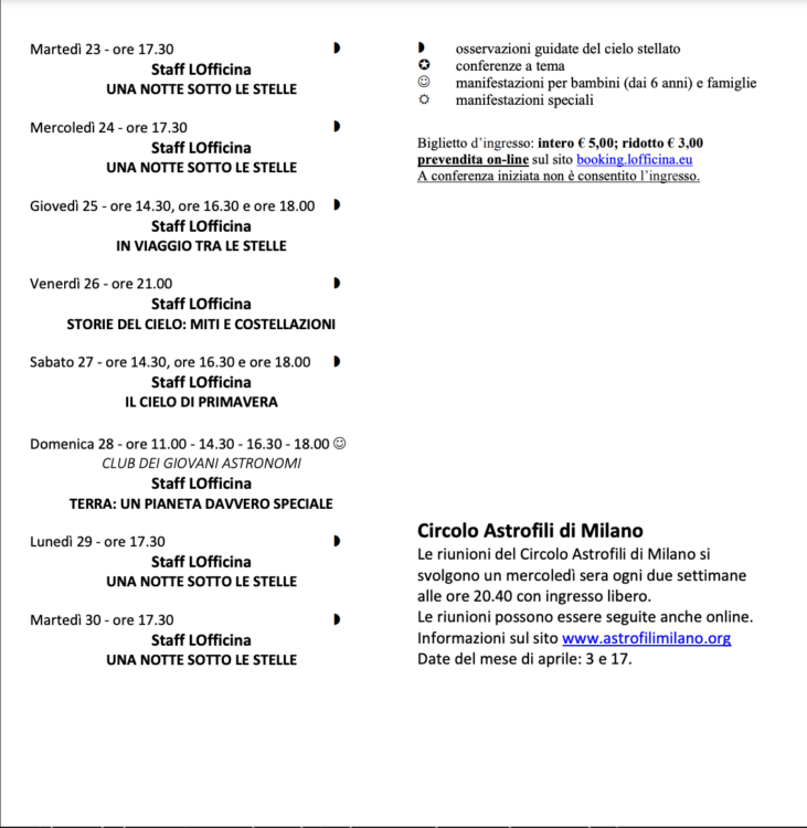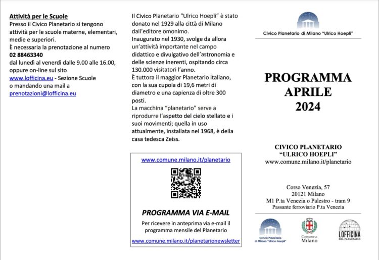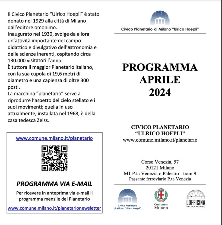 Aprile 2024 – Attività al Planetario di Milano