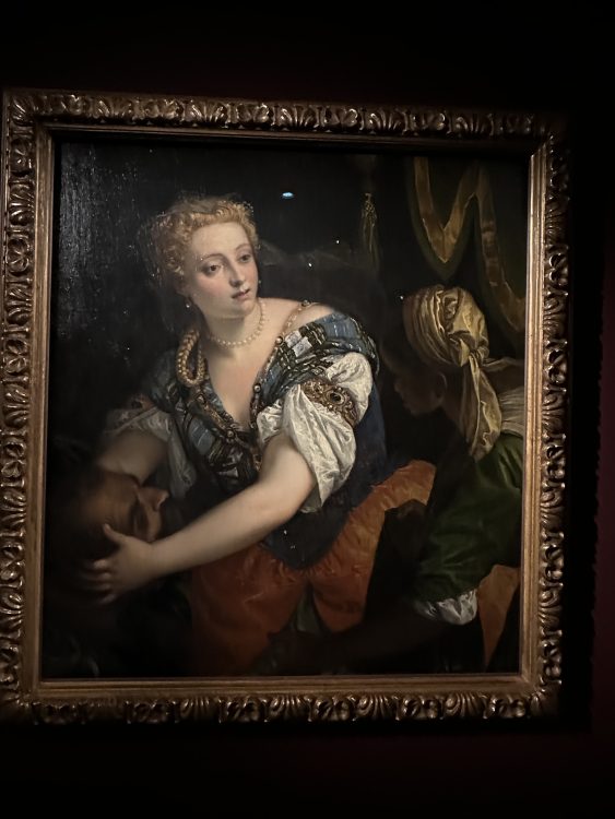 Johannes Lingelbach, attivo a Roma e vicino al gruppo dei cosiddetti Bamboccianti – artisti nordici che portarono nella capitale una pittura attenta alle scene popolari e alla vita quotidiana – trasferisce questi temi nel contesto della Roma barocca, immersi in una luce delicata e narrativa. Uno sguardo specifico è riservato alla pittura tedesca dell’età moderna, le cui radici affondano nella grande stagione rinascimentale di Lucas Cranach, figura centrale nella definizione di un linguaggio autonomo, caratterizzato da una forte stilizzazione e da un’eccezionale padronanza della linea e del disegno. Su questa eredità si inseriscono, in epoca successiva, artisti come Joachim von Sandrart e Jan Liss, le cui opere testimoniano l’assimilazione del Barocco italiano e della tradizione classica, in un continuo dialogo tra Nord e Sud dell’Europa. Il racconto converge poi sugli Asburgo come acquirenti, committenti e custodi dell’arte europea. Straordinari ritratti, insieme a opere di Giuseppe Arcimboldo, David Teniers il Giovane, Guillaume Scrots e Diego Velázquez illustrano una politica dell’immagine in cui il collezionismo diventa strumento di autorappresentazione e mediazione culturale. Tra i capolavori in mostra spicca il celebre ritratto dell’Infanta Margarita in abito blu di Velázquez, icona della ritrattistica di corte e della sottile psicologia dell’artista spagnolo. La pittura italiana costituisce il fulcro simbolico ed estetico della collezione viennese, in particolare grazie alle acquisizioni dell’arciduca Leopoldo Guglielmo, il cui gusto si orientò decisamente verso l’arte del XVI e XVII secolo. In mostra, capolavori di Tiziano, Tintoretto, Veronese, Orazio Gentileschi, Guido Cagnacci e Giovanni Battista Moroni attestano il ruolo centrale dell’Italia nello sviluppo della pittura europea, tra indagine del visibile, sperimentazione luministica e progressivo abbandono dell’idealizzazione.