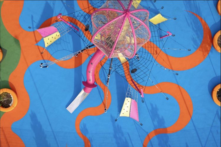 «Quería crear un gran parque infantil que contrastara de alguna manera con las enormes torres que lo rodean», explica Jeremy Deller. Saber que ‘Octospider’ permanecerá para siempre en un parque urbano público es «genial. Espero que los niños lo descubran», añade el artista afincado en Londres.