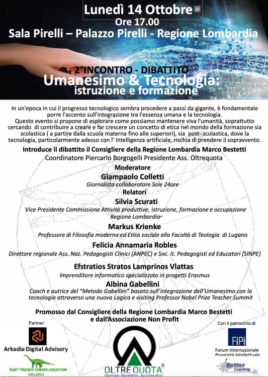 Umanesimo & Tecnologia: istruzione e formazione. Lunedì 14/X/2024