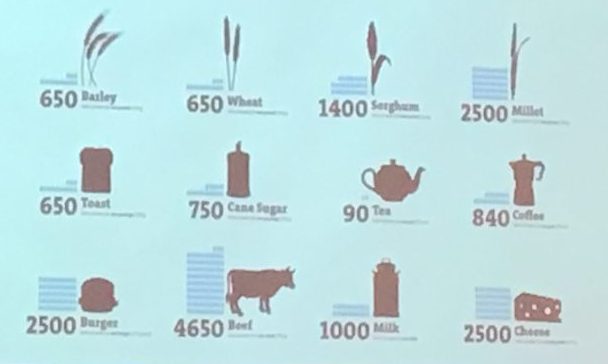 No obstante el uso del agua para el consumo diario que no es poco, la mayor parte del agua, el 70%, va a la agricultura, producir un bife de carne de res seguramente requiere una mayor cantidad de agua.