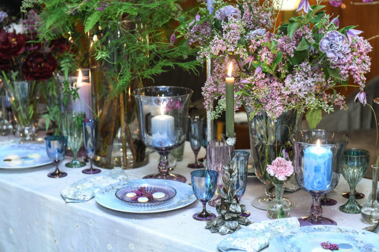 «L’arte della tavola è la mia passione. Credo in un concetto di armonia che comprenda tutti gli elementi, e mi sono divertita a giocare con i motivi floreali e sfumati creati per questa stagione. I bicchieri riprendono le tonalità dei piatti e, proprio come un mazzo di fiori, raccolgono le diverse gradazioni dei pervinca, dei lilla e degli azzurri», commenta Luisa Beccaria.