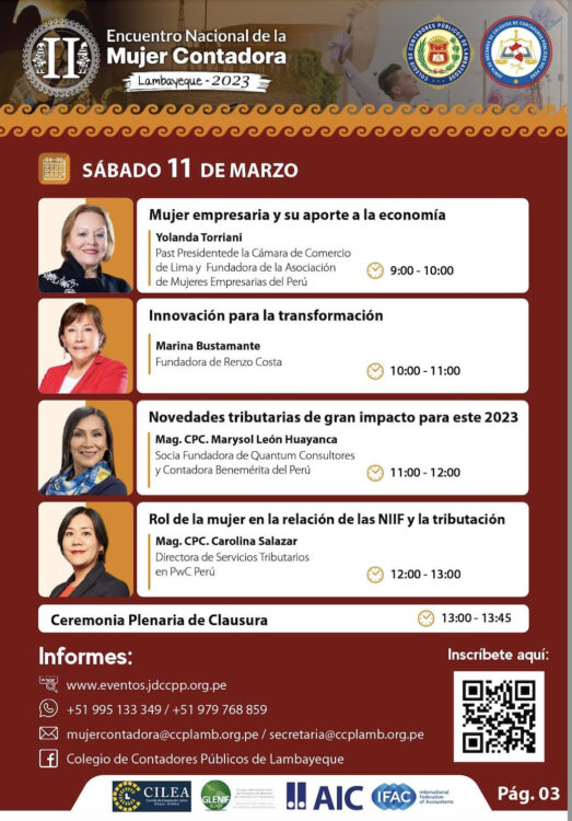 HOY Sábado 11/III en Lambayeque. Encuentro Nacional de la Mujer Contadora