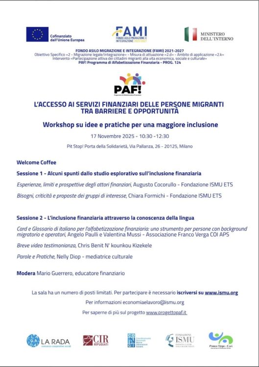 Workshop su idee e pratiche per una maggiore inclusione. Progetto PAF! – Programma di Alfabetizzazione Finanziaria.