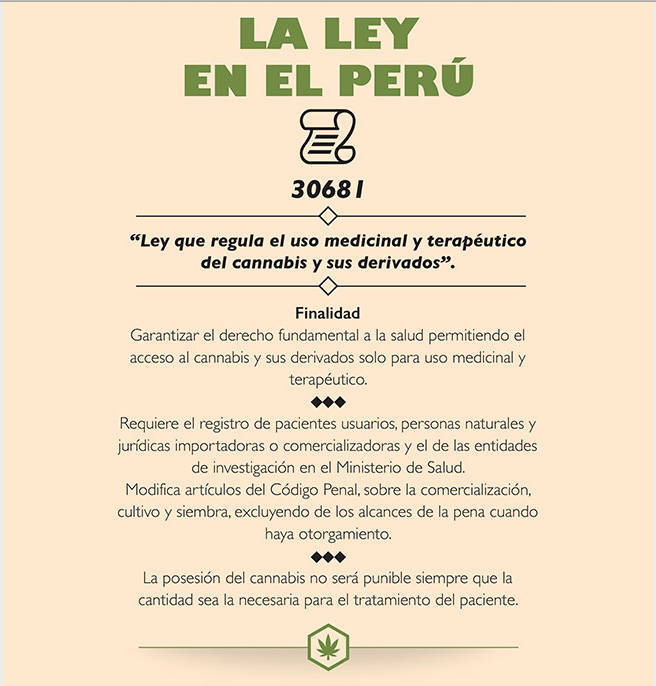 Ley en el Perú 30681: Ley que regula el uso medicinal y terapéutico del cannabis y sus derivados.