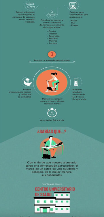 - Fortalece tu cuerpo y mente, comiendo diariamente un alimento de origen animal, como carnes, vísceras, pescado, huevos y lácteos.