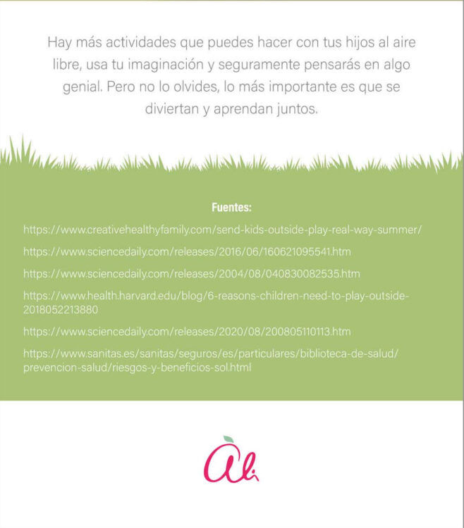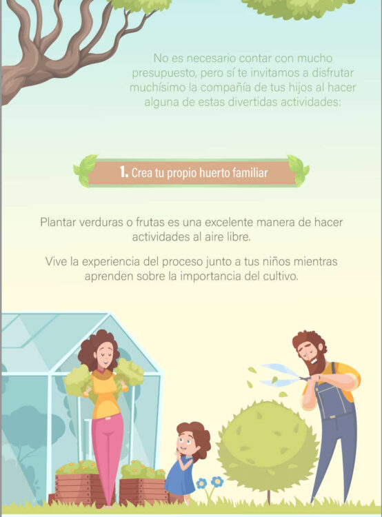 Hay más actividades que puedes hacer con tus hijos al aire libre, usa tu imaginación y seguramente pensarás en algo genial. Pero no lo olvides, lo más importante es que se diviertan y aprendan juntos.