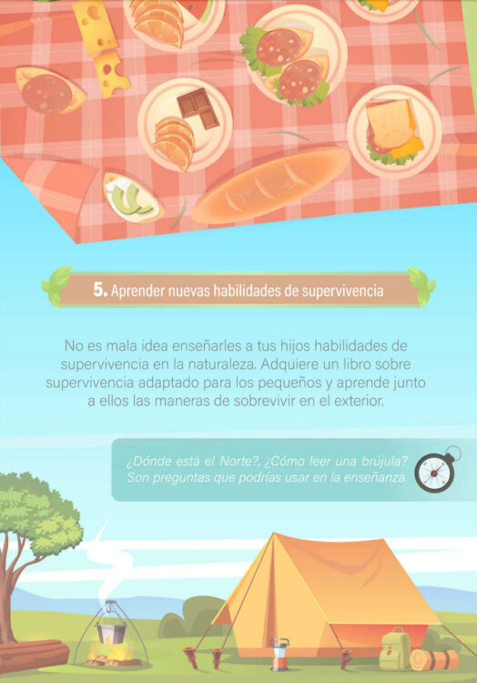 No es mala idea enseñarles a tus hijos habilidades de supervivencia en la naturaleza. Adquiere un libro sobre supervivencia adaptado para los pequeños y aprende junto a ellos las maneras de sobrevivir en el exterior.