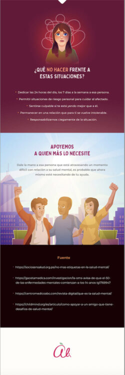 - No hablar de más: Si una persona habla de sus problemas de salud mental contigo es porque confía en ti. No compartas su caso con especialistas a menos que él lo pida o admita.