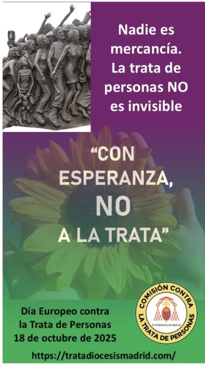 El 18 de octubre se conmemora el Día Europeo contra la Trata de Seres Humanos, una grave violación de los derechos fundamentales que afecta a miles de personas explotadas con fines laborales, sexuales o de mendicidad. Este día busca visibilizar una realidad presente en nuestra sociedad que muchas veces pasa desapercibida y promover la denuncia, la sensibilización y la acción colectiva.