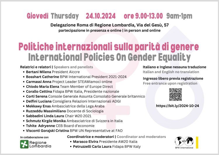 Invito 24/X/2024 Politiche Internazionali sulla Parità di Genere