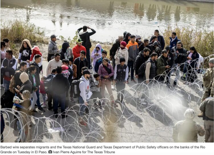 È qui che il governatore del Texas decide quindi di dispiegare la Guardia Nazionale locale e gli agenti di polizia statale in punti strategici come lungo il Parco Shelby della cittadina Eagle Pass che costeggia il fiume Del Rio. Qui il confine è a metà del fiume. Centinaia si appostano e attraversano a nuoto illegalmente invece di approdare nei 28 punti di confine sparsi lungo la frontiera che permettono di accedere agli Stati Uniti legalmente. Abbott ha fatto installare rotoli di filo spinato e posizionato la Guardia Nazionale per impedire se non scoraggiarne l’ingresso.