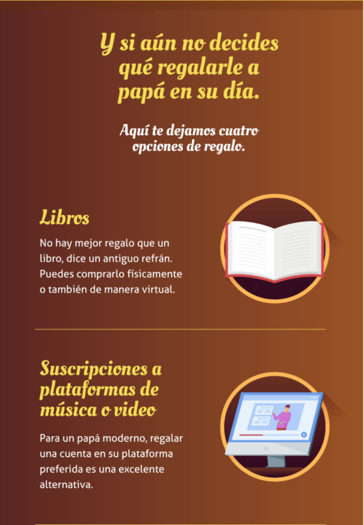 • Suscripciones a plataformas de música o video: Para un papá moderno, regalar una cuenta en su plataforma preferida es una excelente alternativa.