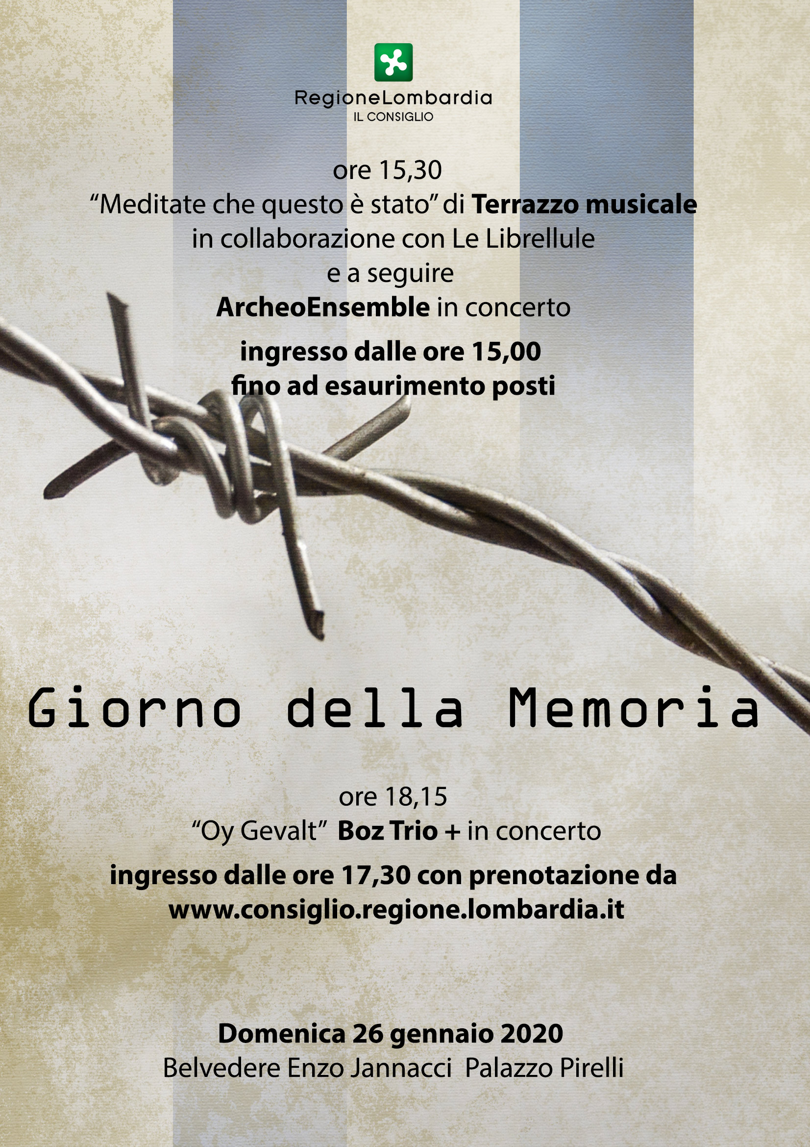 (Entrata su prenotazione su https://intranet.consiglio.regione.lombardia.it/pubblicazioniweb/PrenotazioniCRL.aspx?CodiceEvento=RCC20200126).