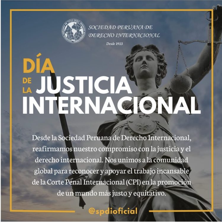 La Sociedad Peruana de Derecho Internacional (SPDI) brinda reconocimiento al Día de la Justicia Internacional, evocando al 17 de julio de 1998, fecha trascendental en la cual se adoptó el Estatuto de Roma, documento histórico que propició la creación de la Corte Penal Internacional (CPI), organismo esencial en la lucha contra la impunidad y en la protección de los derechos humanos a nivel global.