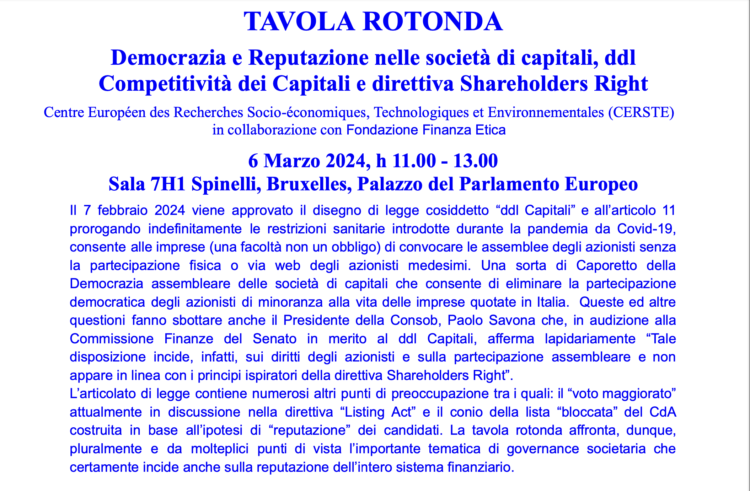 Invito 6/III/2024 Ore 11.00 – 13.00 Spinelli, Parlamento Europeo