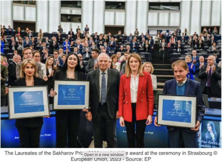 El Premio Sájarov a la Libertad de Conciencia del PE 2023 fue otorgado a Jina Mahsa Amini y al movimiento Mujer, Vida, Libertad en Irán, en una ceremonia celebrada el 12 de diciembre.
