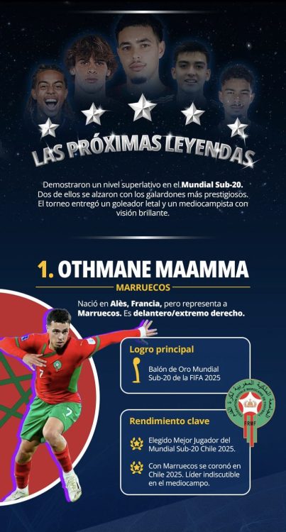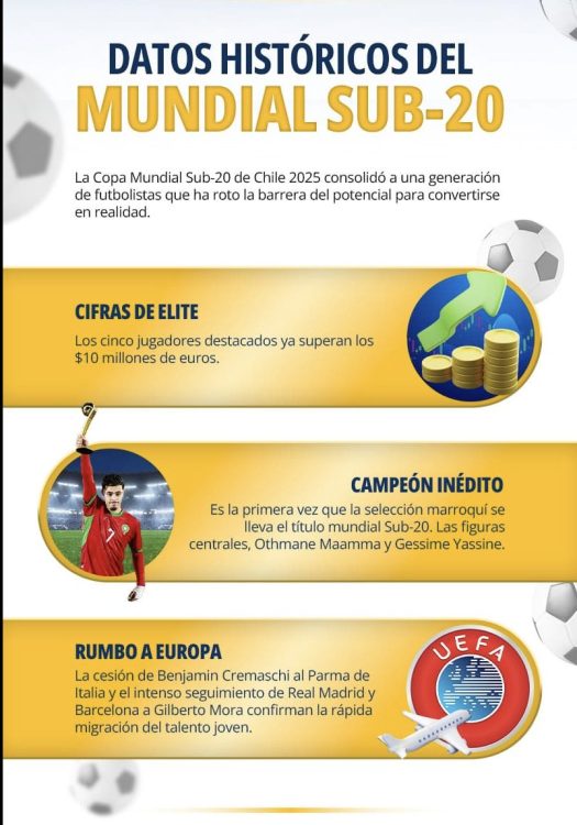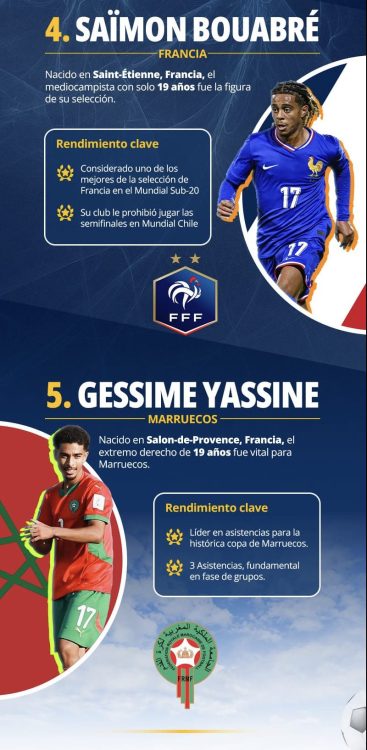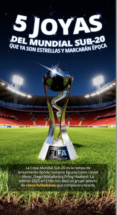Esta información se basa en una infografía realizada por Marcadores 247, que recopila y destaca el desempeño de estas nuevas promesas durante el Mundial Sub-20, ofreciendo una mirada clara sobre los talentos que empiezan a ganar protagonismo en el panorama internacional.