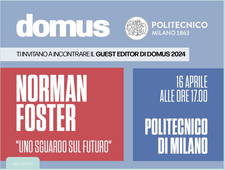 In occasione della  Milano Design Week 2024, il Politecnico di Milano in collaborazione con Domus ospiterà una delle figure più influenti nel mondo dell’architettura contemporanea: Lord Norman Foster.