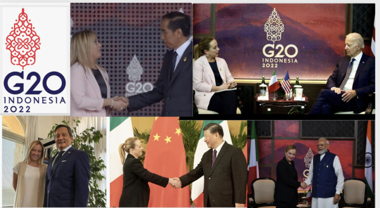 Ha sido la única representante mujer en el G20, Italia pasó, por decisión de su población, a ser cabeza de lista en el mundo occidental posicionando a una joven mujer como presidente del Consejo de Ministros. Ante la rabia de tantos machistas y aduladores de otros italianos que se quedaron en casa rumiando de envidia, con rabia, buscando defectos en el comportamiento de Giorgia Meloni. En el título señalamos que «brilla en Bali» primero por ser la única mujer, sobre todo, por su exposición a la prensa, un discurso de alto nivel con visión geopolítica, donde la crítica fue «¿cómo hará cuándo volverá?», los ataques no cesarán, esto presenta dos situaciones, una marcha briosa para las italianas y no sólo para ellas y cuánto es cínica la izquierda, hablar de paridad y en los hechos negarla.