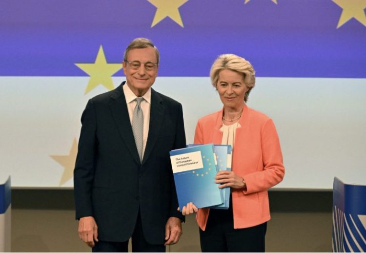 Mario Draghi y Von der Leyen, con el Informe comisionado a Draghi por la misma.