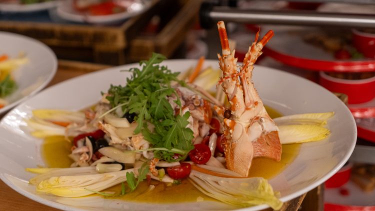 A lo largo de la noche, los mariscos se robaron el protagonismo, con langostas tan frescas y suculentas que todos disfrutaron y repitieron sin remordimientos. La variedad de proteínas, sin un solo grano de arroz, fue un placer continuo, con platos que incluían desde el chuletón norteamericano T-bone hasta abulones estofados. Todo acompañado por verduras frescas de estación, cocinadas de manera sencilla pero impecable. Cada bocado era una explosión de sabor, desde las entradas frías hasta el pato a la pekinesa, pasando por delicias como las conchitas con hongos y queso, y el rombo al vapor con flores de loto. La cena fue tan abundante cuanto sabrosa.