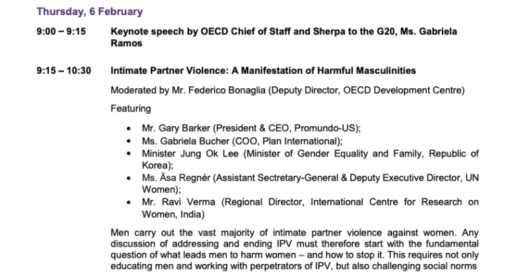 Join OECD Ministers and other global leaders at the OECD in Paris on 5-6 February 2020 to discuss how to prevent, address, and eradicate intimate partner violence.