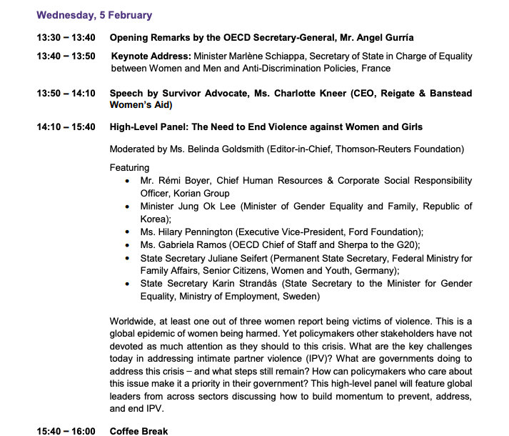 Join OECD Ministers and other global leaders at the OECD in Paris on 5-6 February 2020 to discuss how to prevent, address, and eradicate violence against women.