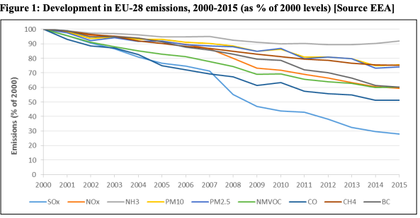 Aunque el número de personas expuestas a la contaminación del aire ha disminuido notablemente desde 2008, la contaminación del aire sigue siendo la causa ambiental más importante de problemas de salud en la UE. Se estima que genera más de 400,000 muertes prematuras cada año, con personas en áreas urbanas particularmente expuestas, y que tiene efectos nocivos en los ecosistemas.