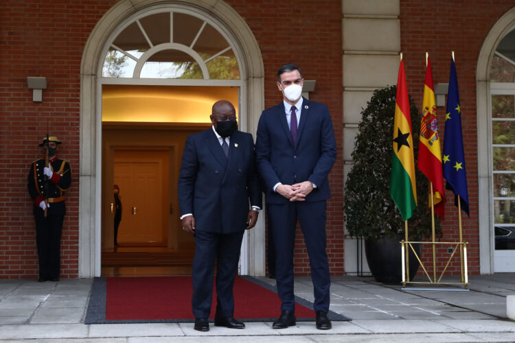 El presidente del Gobierno, Pedro Sánchez, con este motivo se reunió con el presidente de la República de Ghana, Nana Akufo-Addo, en Madrid, para abordar asuntos de interés común en todos los ámbitos, con motivo de la asistencia del líder africano a la presentación del Foco África 2023. Asistieron la ministra de Asuntos Exteriores, Unión Europea y Cooperación, Arancha González Laya, el consejero Delegado de ELECNOR, y a través de vídeo, el presidente del Banco Africano de Desarrollo y la ministra de Asuntos Exteriores de Senegal.