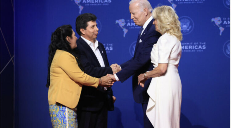 En el marco de la IX Cumbre de las Américas, el presidente Pedro Castillo Terrones, y su esposa, Lilia Paredes, fueron recibidos por el presidente de Estados Unidos, Joe Biden, quien estuvo acompañado de su esposa, Jill Biden.